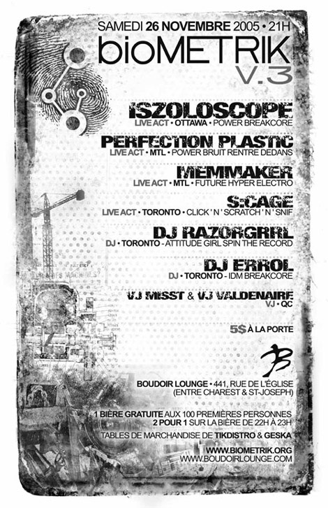 November 26, 2005 bioMETRIK v.3 Le Boudoir Lounge, 441 rue de l'Église Quebec City, QC, Canada