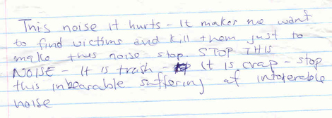 While I was playing, security handed me a note -- which was priceless! I was booked to play an "industrial noise" set, and I think I did my job: