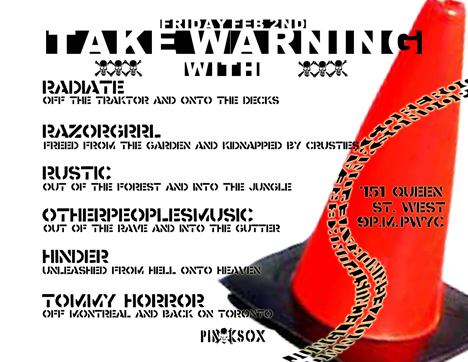 February 2, 2007 TAKE WARNING! Pin:ksox Event 751 Queen St. W. Toronto, ON, Canada